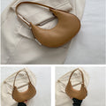 Crafted in high-quality PU leather, the bag features a half-moon shape with visible stitching details, a smooth zip-top closure, and a short shoulder strap. The interior is lined in durable polyester, perfectly sized for your everyday essentials.