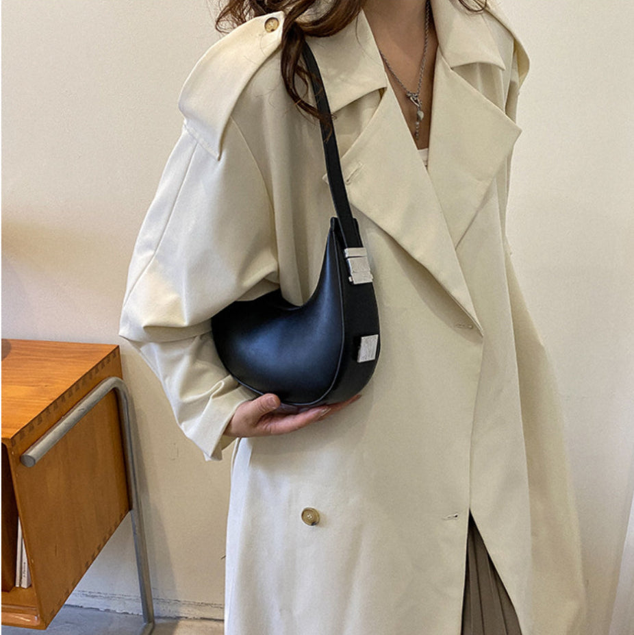 Minimalist Crescent Bag – Sculpted Elegance in Faux Leather