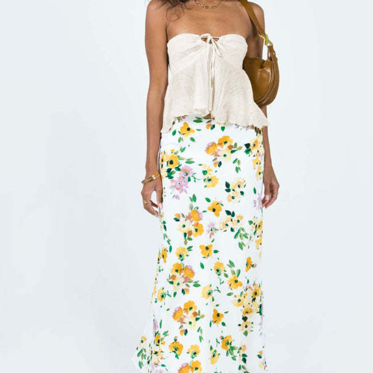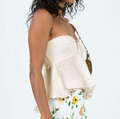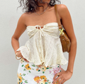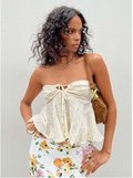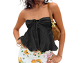✔️ Style: Strapless ruched tube top with front tie-up and ruffles