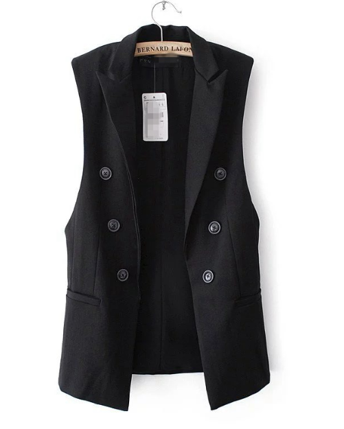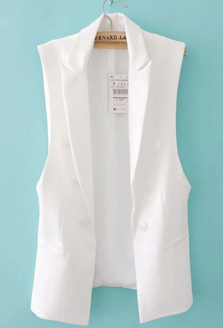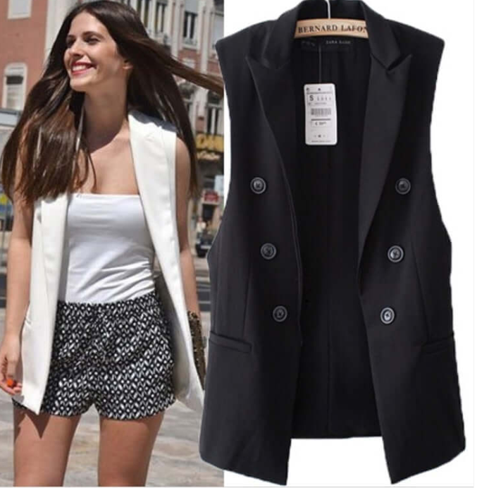 Elegantíssimo colete feminino longo alfaiataria com 3 botões na parte frontal, gola inglesa alongada, nas cores branco e preto. Perfeito para alongar a silhueta, peça-chave que sempre traz sofisticação e elegância nos looks.