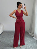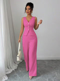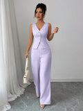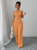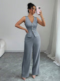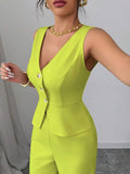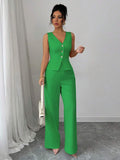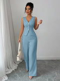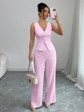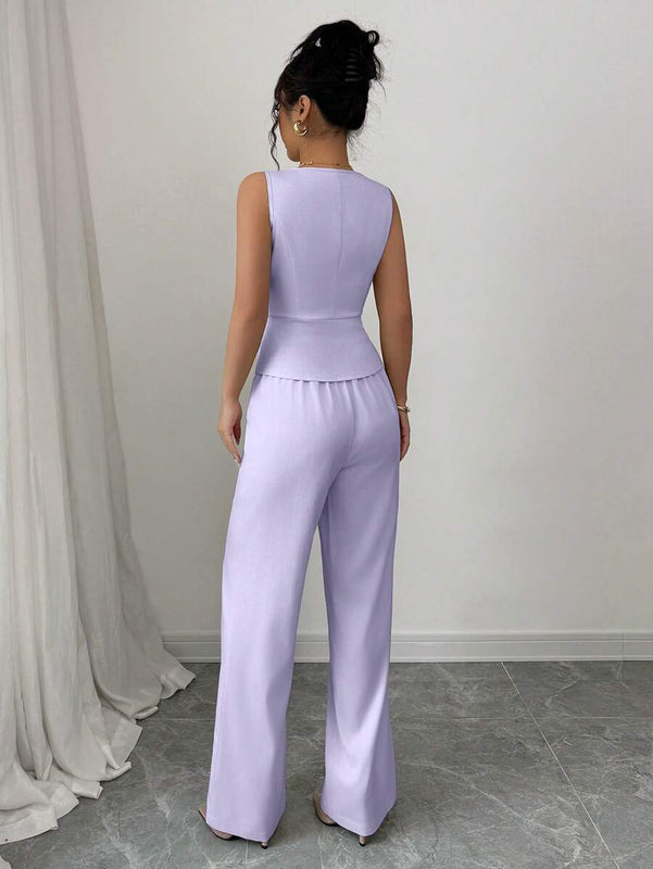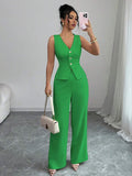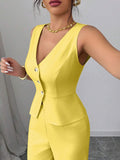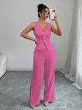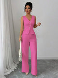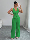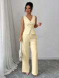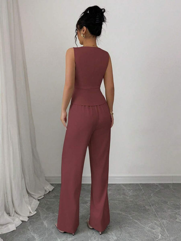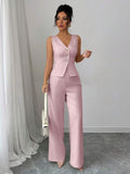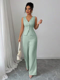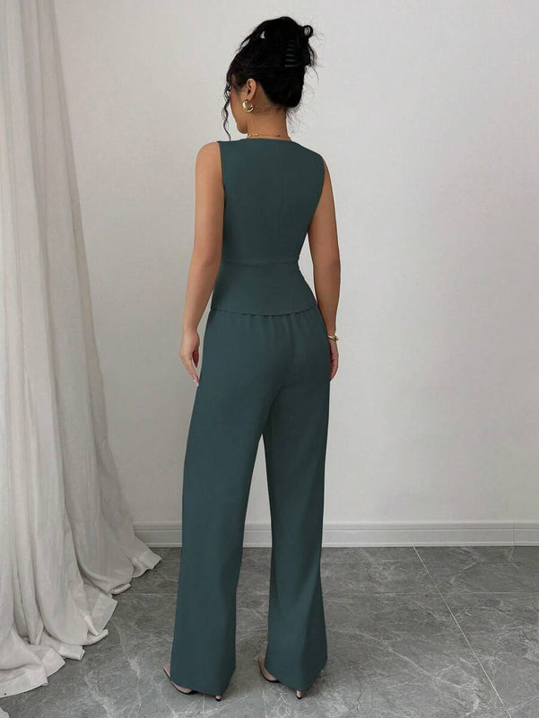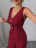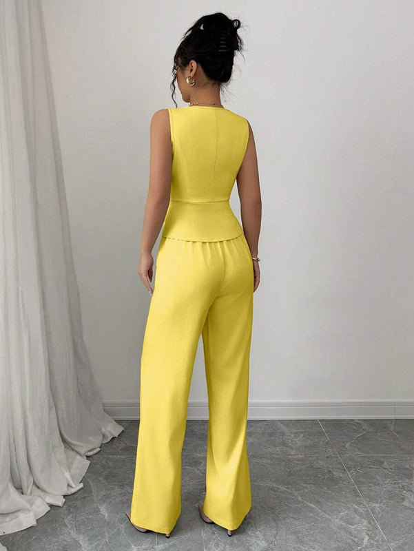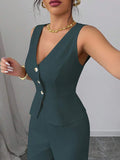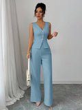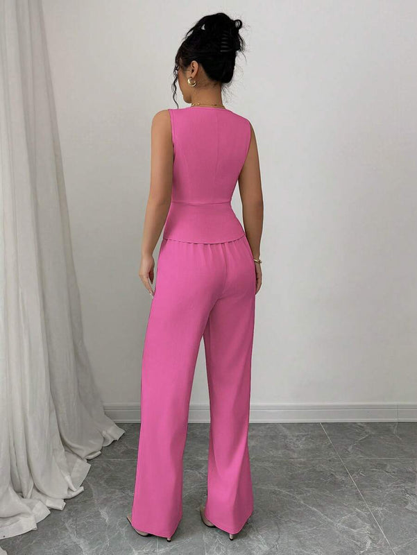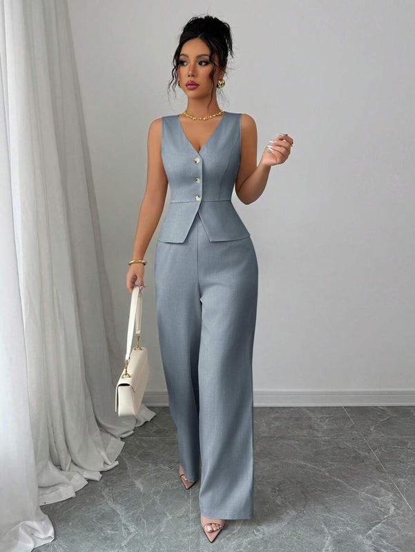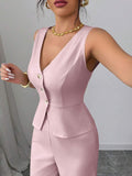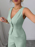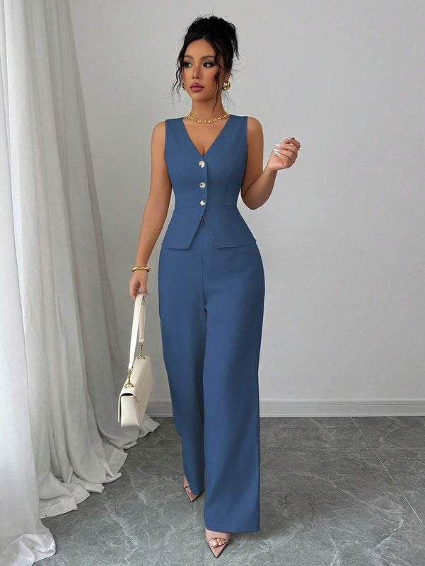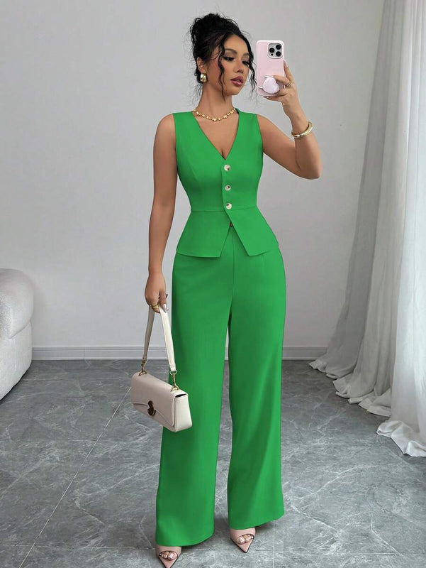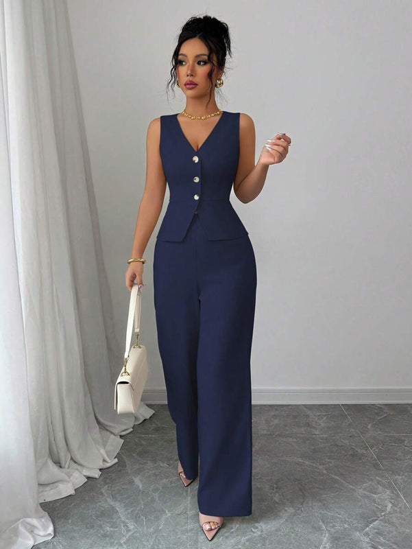 The Elenzga Women’s Elegant Sleeveless Camisole & Pants Set combines modern minimalism with practical comfort. Featuring a V-neck camisole with button-front detail and slim-fit tailored pants, this two-piece is designed for effortless office chic and smart-casual sophistication. Perfect for business commuting, teaching, or cultural occasions, it’s a timeless outfit that transitions seamlessly from day to night.