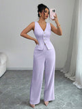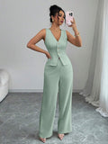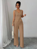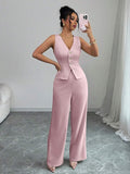 Elenzga Women Elegant Sleeveless Camisole And Pants Set