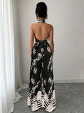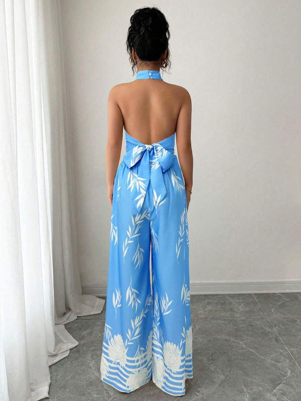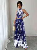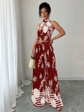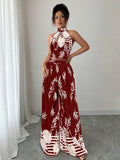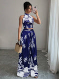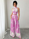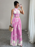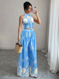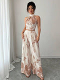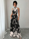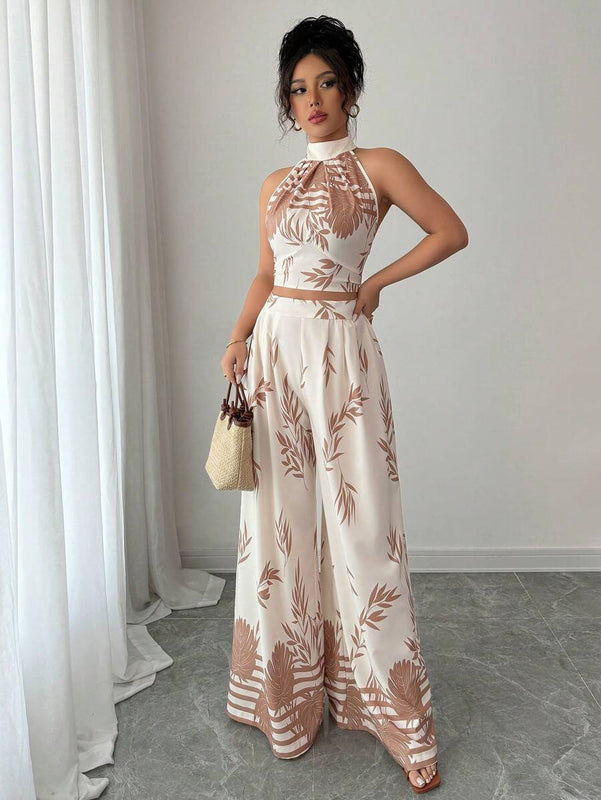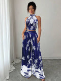 EMERY ROSE Women's 2-Piece Vacation Set – Halter Neck, Backless Top & Wide Leg Pants