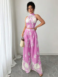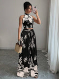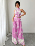 The EMERY ROSE Women’s Elegant 2-Piece Set brings together chic sophistication and relaxed summer energy. Featuring a halter neckline with backless detail, a cropped tie-waist top, and wide-leg printed pants, this set is the definition of versatile elegance. Perfect for beach strolls, summer festivals, or vacation evenings, it’s designed to keep you stylish and comfortable all day long.