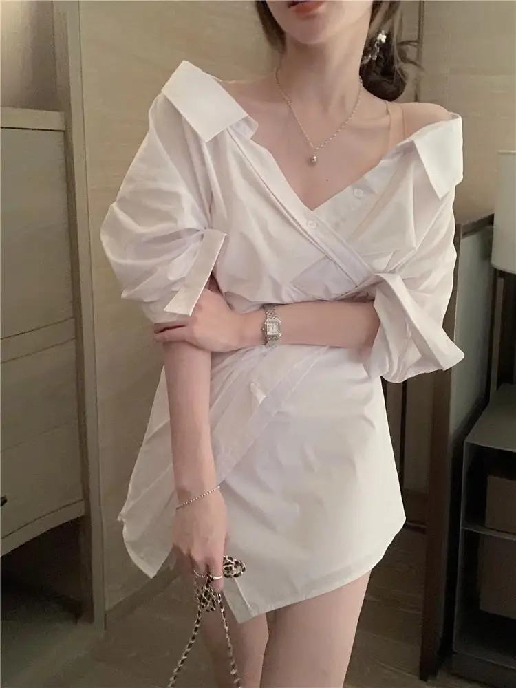 👗 White Off-Shoulder Shirt Dress - Minimalist Style and Sophisticated Sensuality