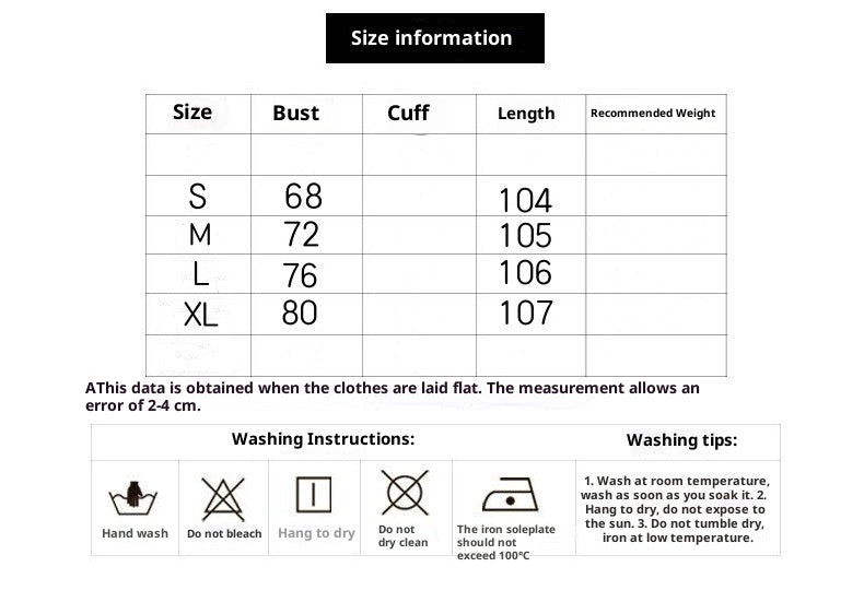 Asian sizes are 1–2 sizes smaller than European/US sizes. If between sizes, please choose the larger one.