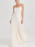 🤍 Long Dress with 3D Flowers and Flowing Skirt - Romantic & Sophisticated