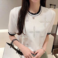 The White Knit Blouse is designed for women who love romantic, delicate details. Featuring pearl-like beads and shimmering crystals, it adds a refined, feminine touch to even the most minimal outfits.