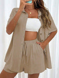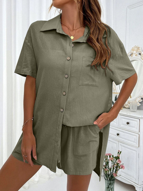 The LUNE Women’s Shirt & Shorts Set is designed for laid-back confidence on warm days. Featuring a drop-shoulder blouse with classic collar and button-down front, paired with knot-front shorts with practical pockets, this set delivers both comfort and casual sophistication. Perfect for home lounging, casual strolls, or city weekends, it’s an easy go-to for effortless summer styling.