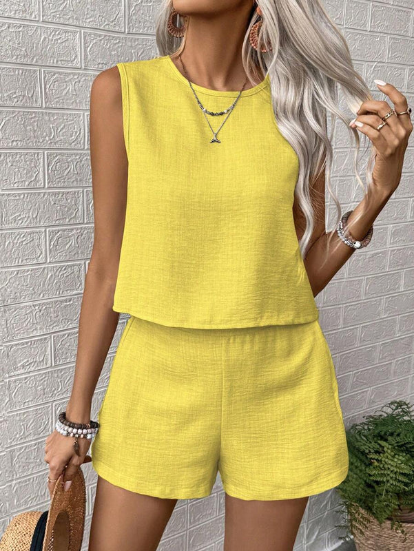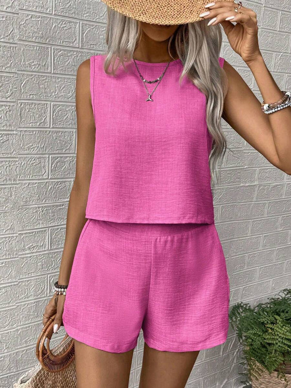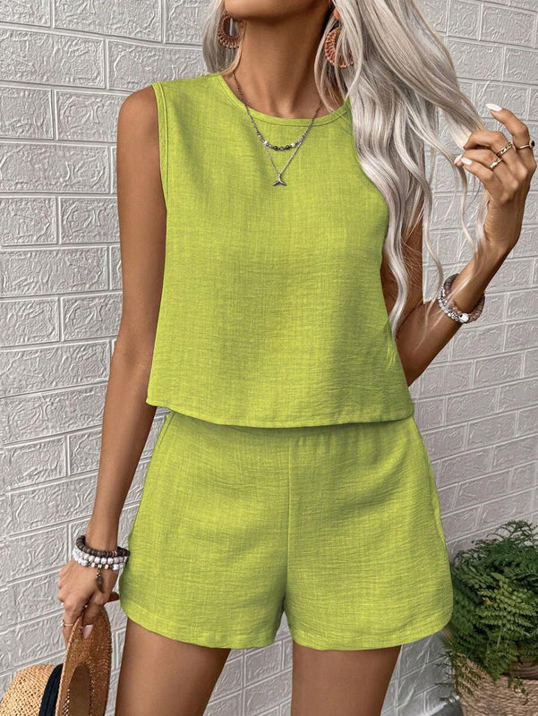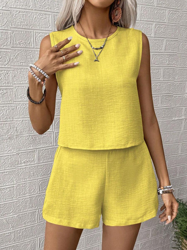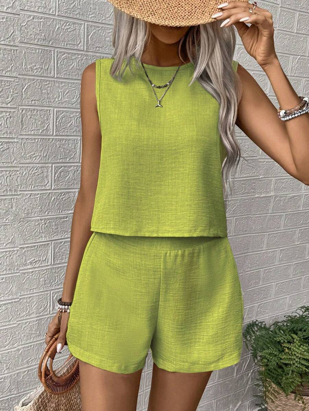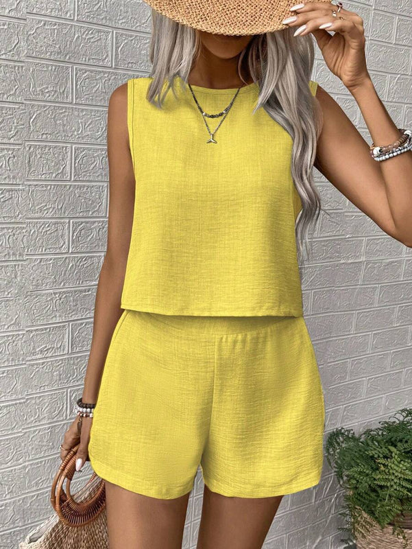 LUNE Women’s Tank & Shorts Set — Casual Summer Comfort | Plain Crop & Shorts
