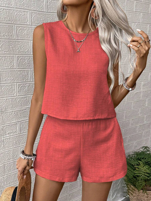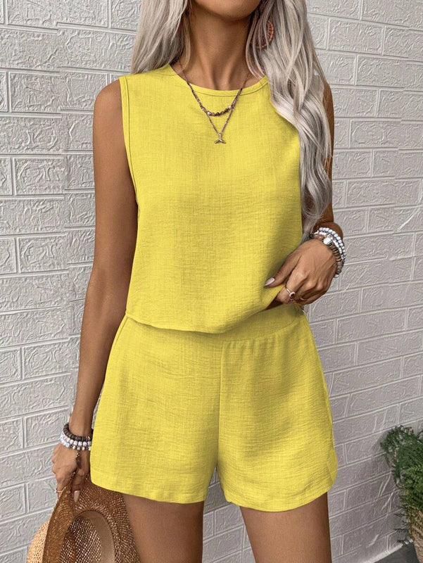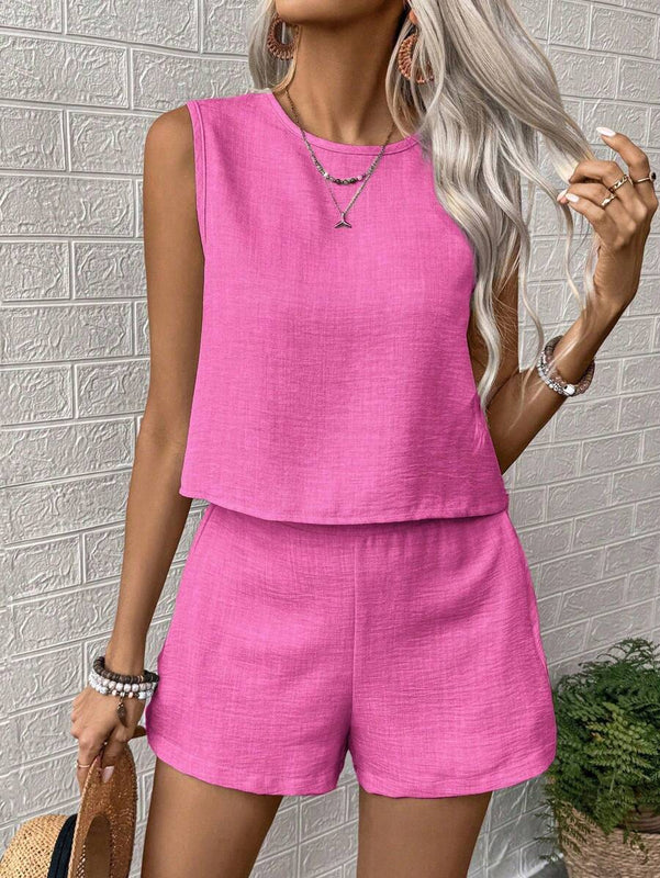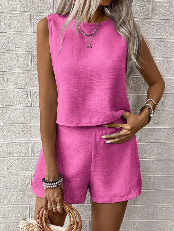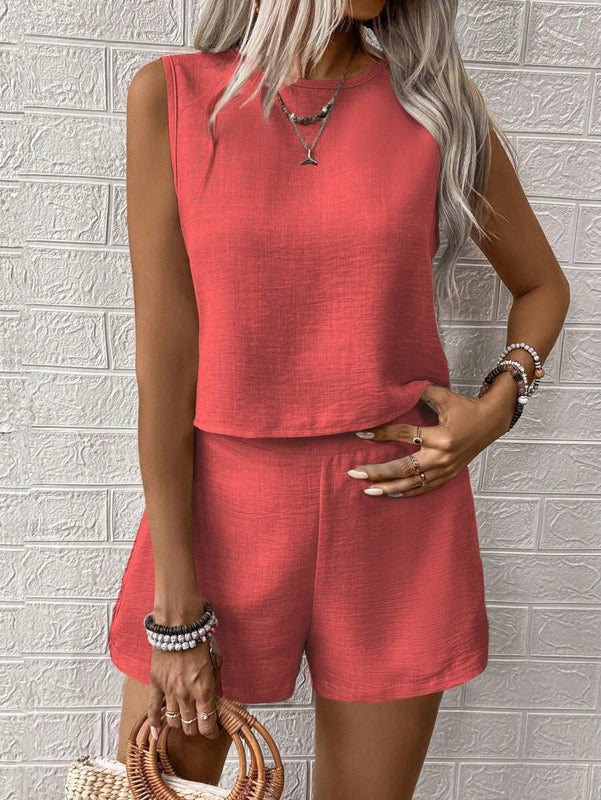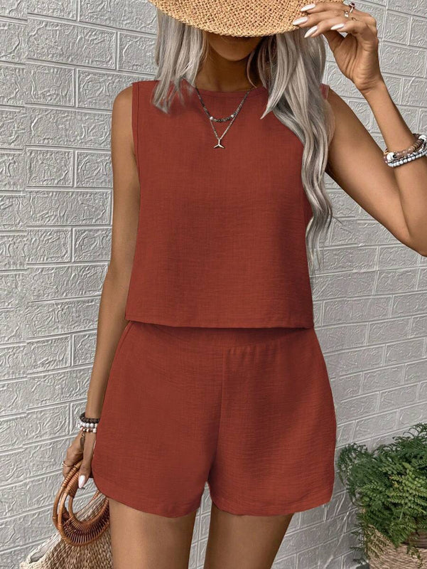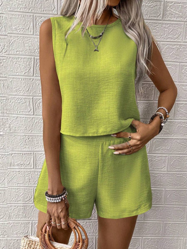 LUNE Women’s Tank & Shorts Set — Casual Summer Comfort | Plain Crop & Shorts