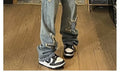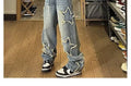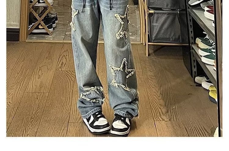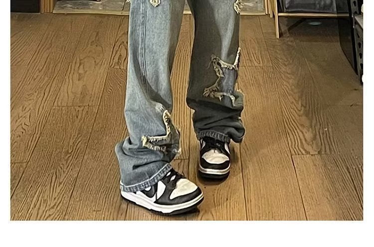 ✔️ Style: High-waist straight-leg jeans with a cool design