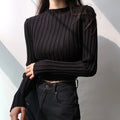 Ribbed Long-Sleeve Knit Top – Minimalist Retro Style for Mid-Season Looks