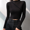 Made from ribbed polyester knit, it hugs the body with softness and comfort. The high neckline and long sleeves create a balanced silhouette, while the cropped length adds a modern edge — perfect for pairing with high-waisted bottoms.