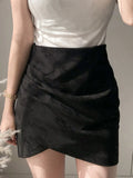 Made from soft-touch faux suede, this skirt offers a structured silhouette that hugs the body with sophistication. The short length and asymmetrical cut strike the perfect balance between bold and refined — ideal for modern, versatile looks.