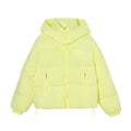 This hooded cotton-padded jacket blends modern design with practicality, perfect for chilly days. Made from durable polyester, it offers a flattering slim fit that enhances the silhouette without compromising comfort. Available in black, white, yellow, and coffee, it’s the ideal choice for those seeking warmth with an elegant and versatile touch.