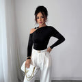 🖤 A timeless asymmetric top that balances elegance with modern flair.