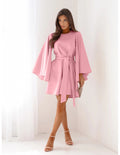 This stunning dress features a round neckline, flared bell sleeves, and a lace-up waist design that enhances your natural silhouette with style and grace. Crafted from soft polyester, it offers both comfort and a flattering fit. Available in versatile shades, it’s perfect for autumn outings, parties, or chic daily wear.