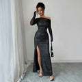 This long-sleeve tube top dress blends sleek satin fabric with dazzling sequin details, creating the perfect look for nights that demand attention. Its high-waist hip skirt design sculpts your silhouette, while the long length and fitted cut bring sophistication with a touch of glamour. Ideal for parties, evening events, or any occasion where style takes the spotlight.