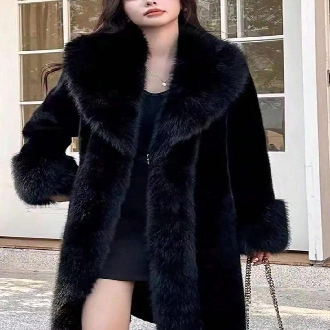 Women’s Faux Rabbit Fur Mid-Length Coat – Cozy Elegance with Modern Charm