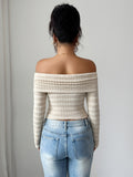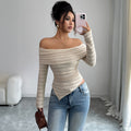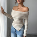 Women’s Light Apricot Off-Shoulder Knit Top – Elegant & Versatile