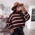 Women’s Loose Striped Mock-Neck Pullover Sweater – Chic & Cozy