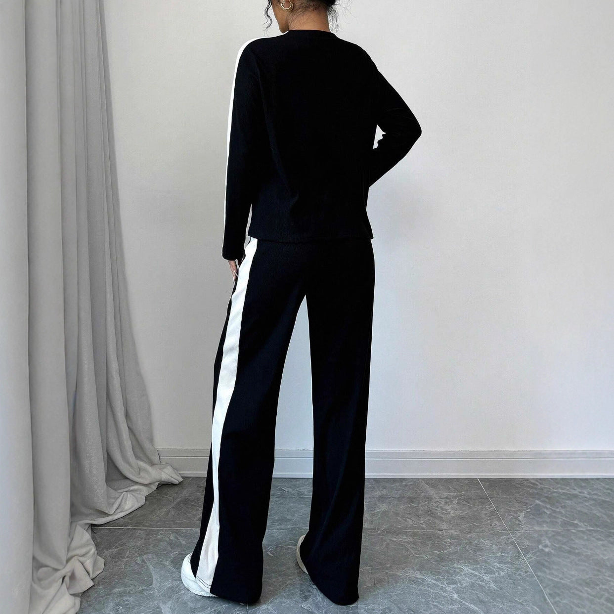 Step into effortless street-style chic with this color-contrast patchwork two-piece suit. Designed for both comfort and bold fashion, this trendy set includes a relaxed raglan sleeve top and matching trousers – perfect for autumn and winter looks that turn heads.