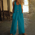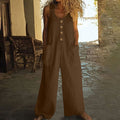 Women’s Sleeveless Wide-Leg Cotton Jumpsuit – Effortless Retro Style