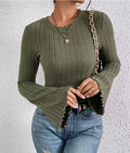 Women’s Solid Color Bell Sleeve Textured T-Shirt – Casual & Chic