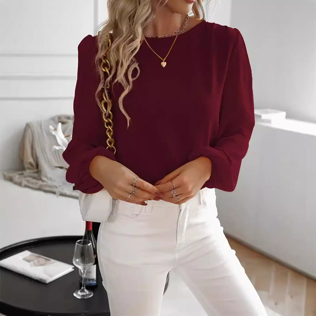 Women’s Solid Color Round Neck Top – Chic & Versatile