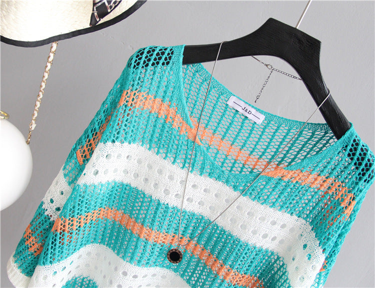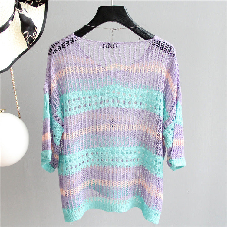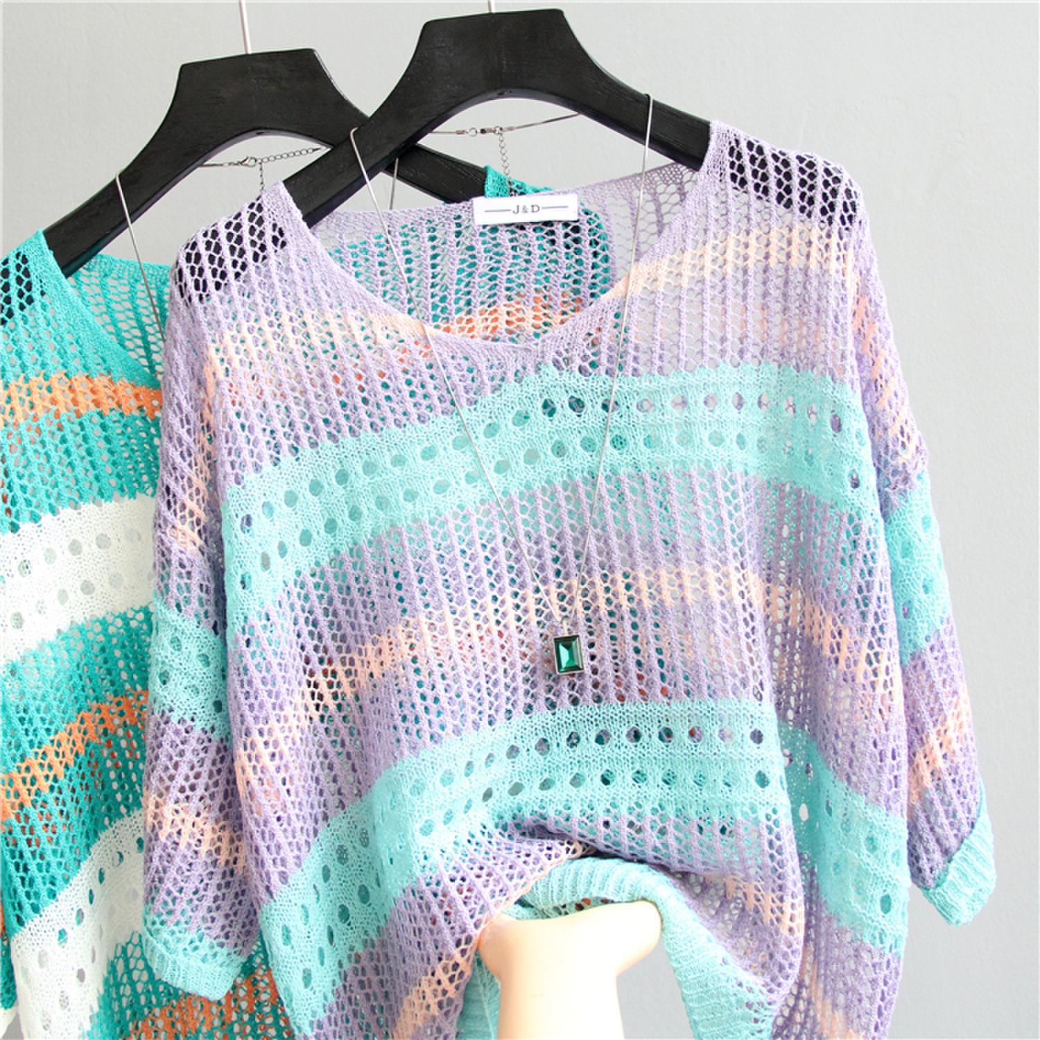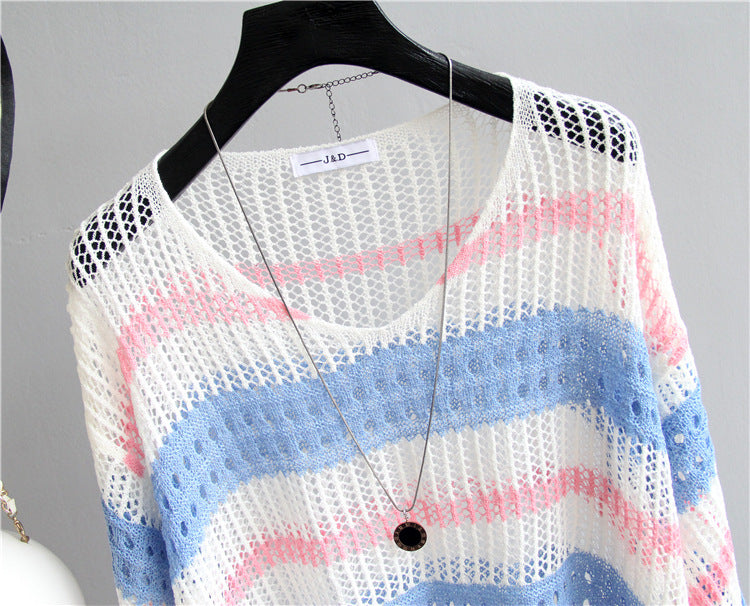 Women’s Striped Loose Pullover Sweater – Lightweight Elegance