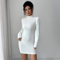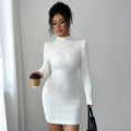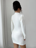 Stay effortlessly chic through the cooler days with this turtleneck sweater dress. Crafted from soft acrylic knit, it offers both comfort and a flattering silhouette with its mid-waist design. The long sleeves and clean white shade add a touch of modern elegance, making it a versatile piece for work, casual outings, or evening wear.