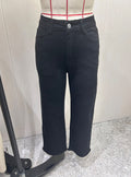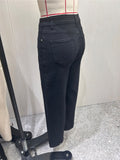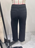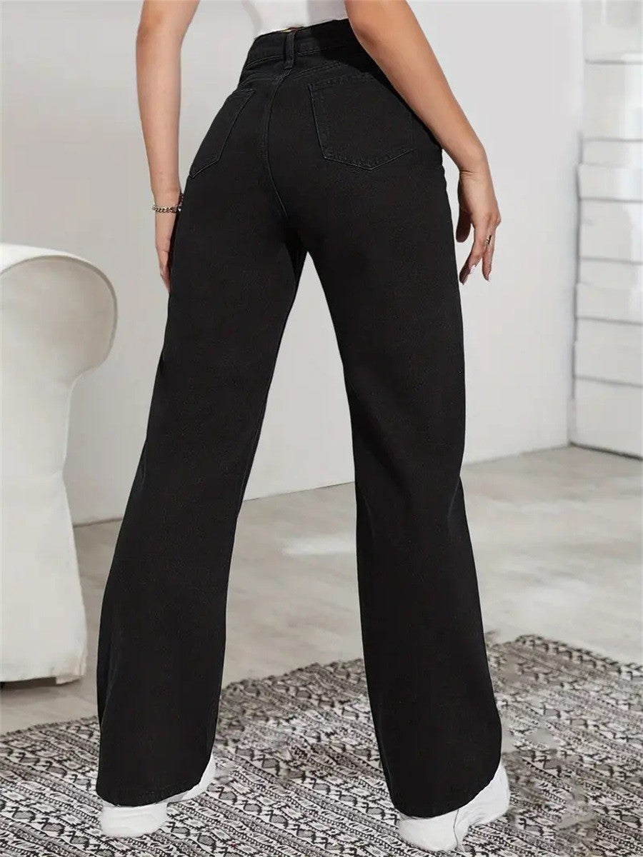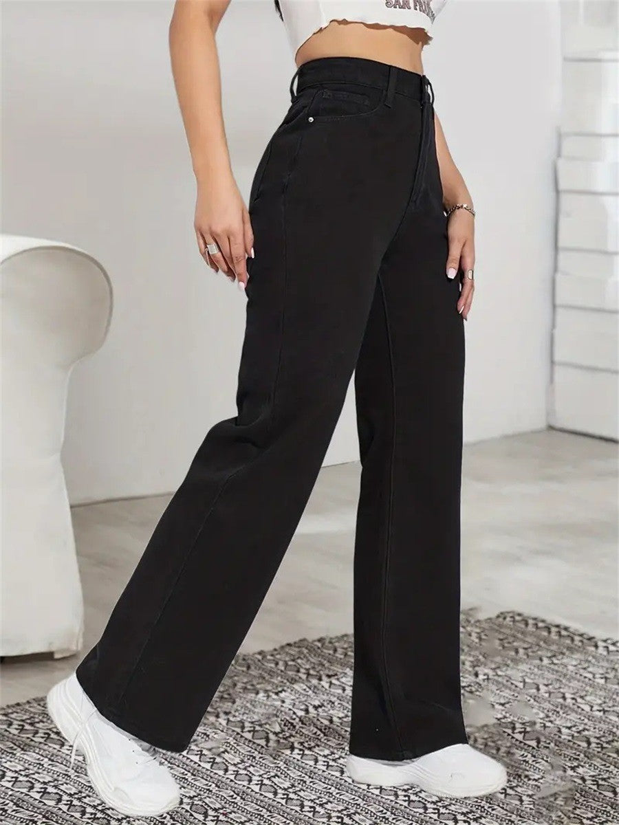 Women's Black Washed Straight-Leg Jeans – High-Waist Stretch Casual Trousers
