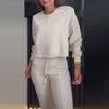Effortless Everyday Style: A sleek two-piece outfit featuring a cozy hooded top and matching pants for a put-together casual look.