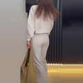 Women's Casual Hooded Two-Piece Set – Solid Color Top & Pants Outfit