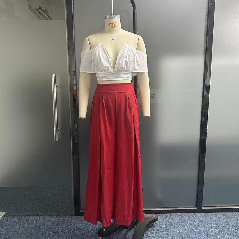 Women's Off-Shoulder Top & Wide-Leg Pants Set – Sexy Summer Two-Piece Outfit