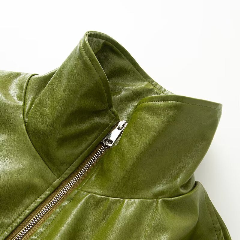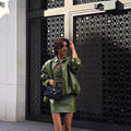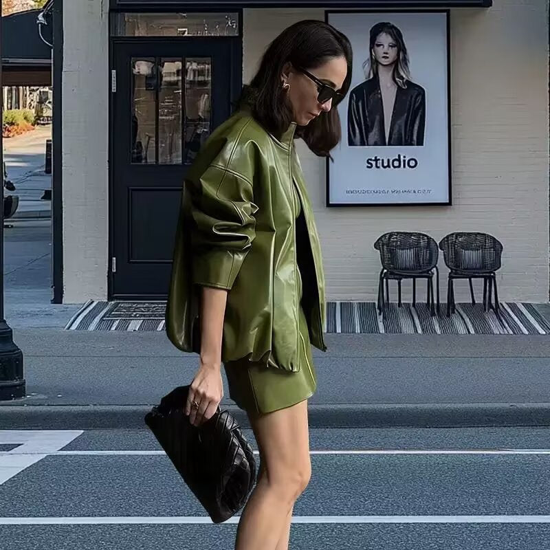 ✨ Bold Retro Appeal: A statement two-piece set featuring a chic strapless PU leather dress paired with a matching jacket — perfect for making an impression.