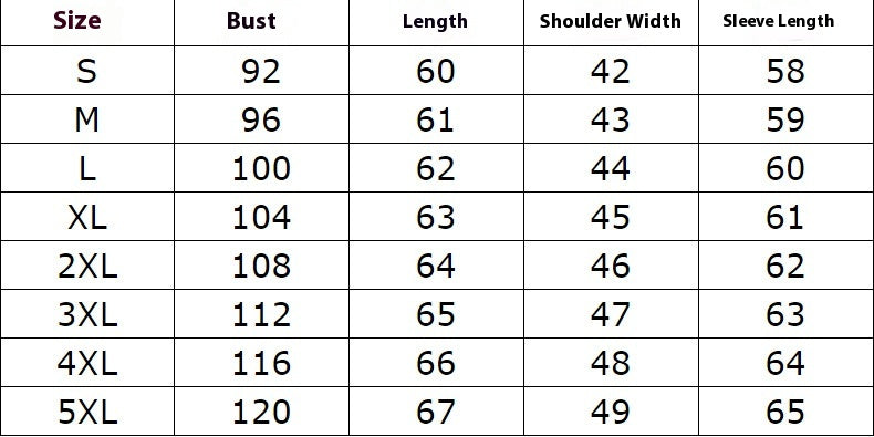 • Sizes: S–5XL (European sizing)