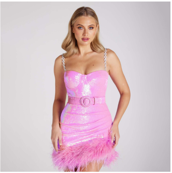 Elevate Your Look with the Glamour of the Sequin Slip Dress with Faux Fur Belt