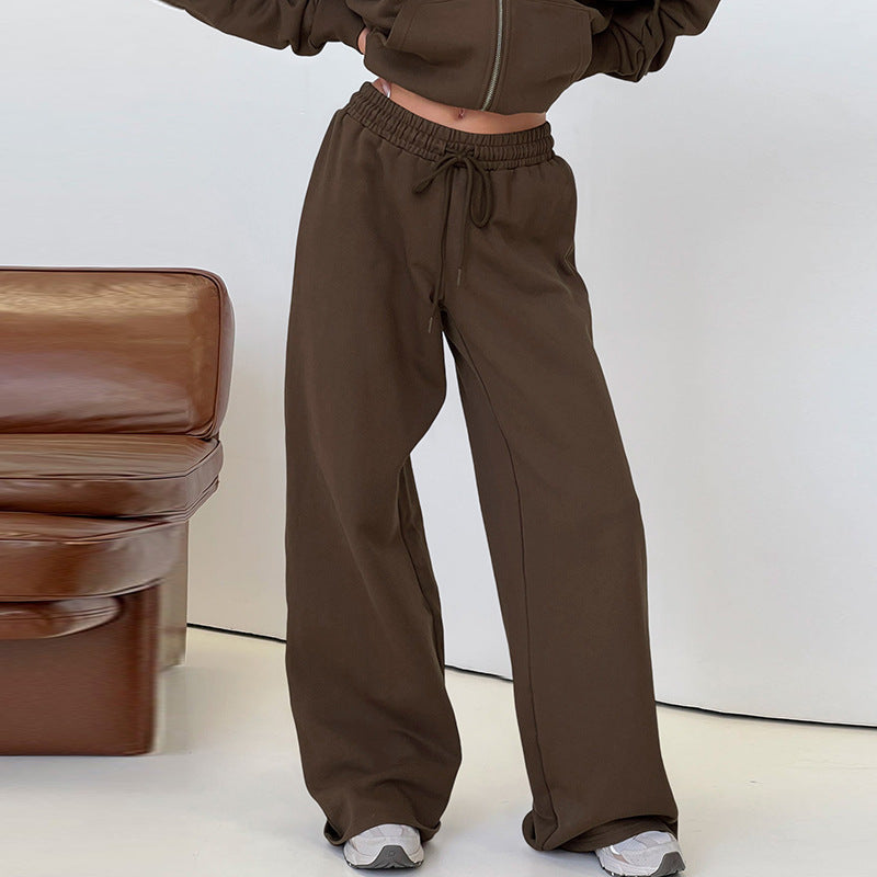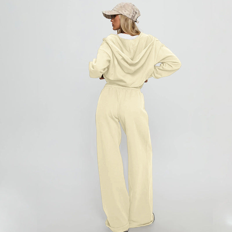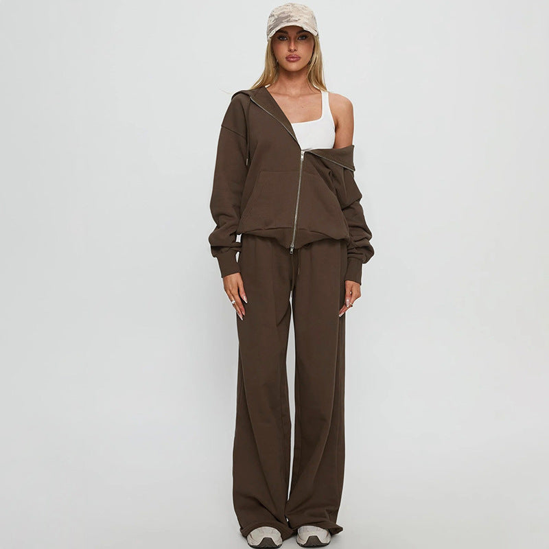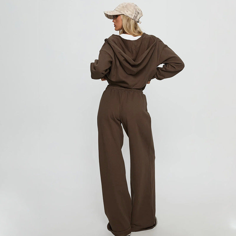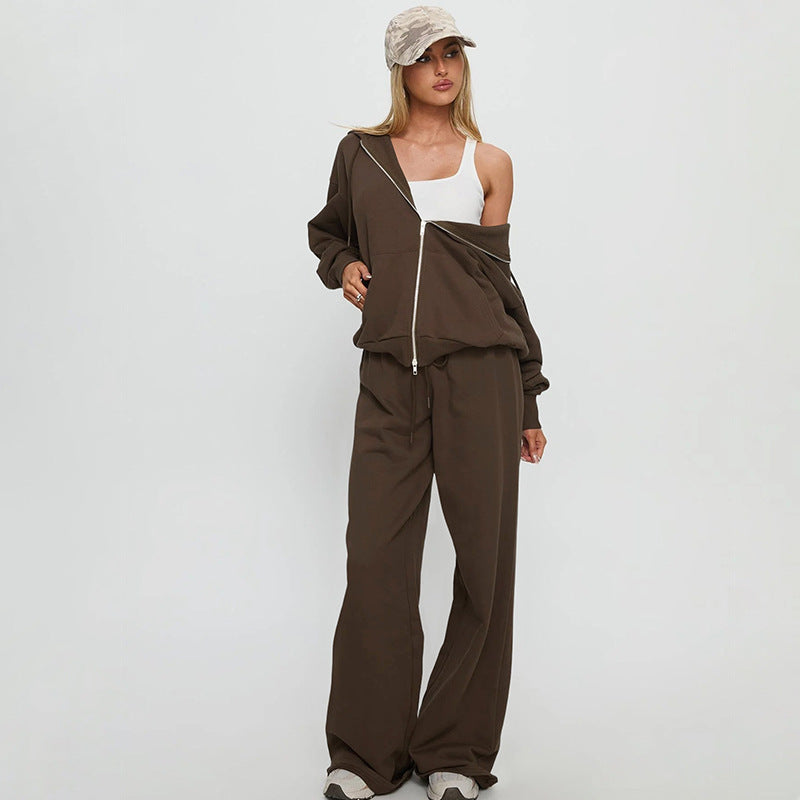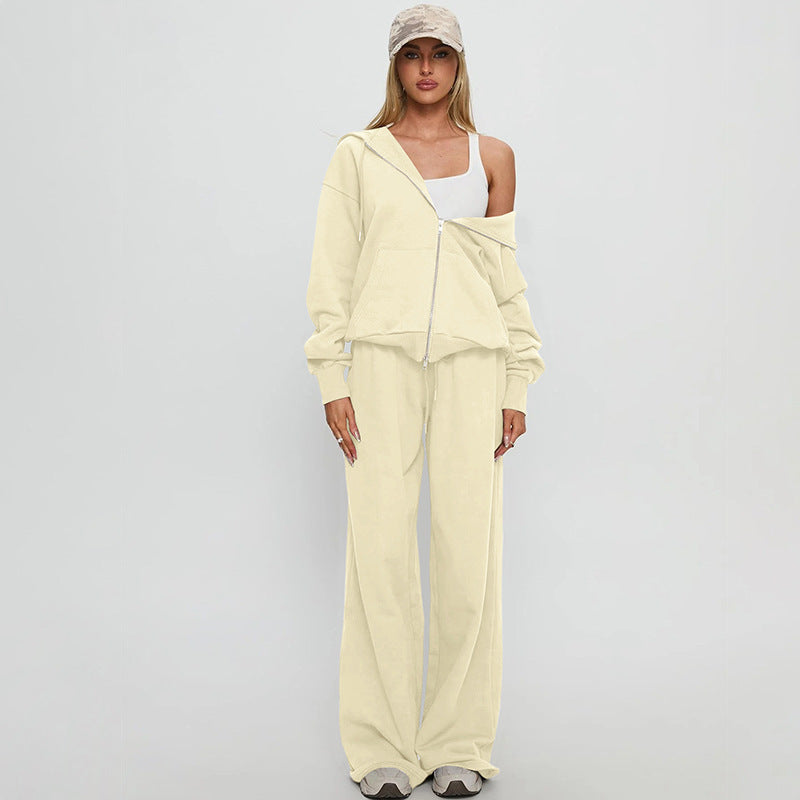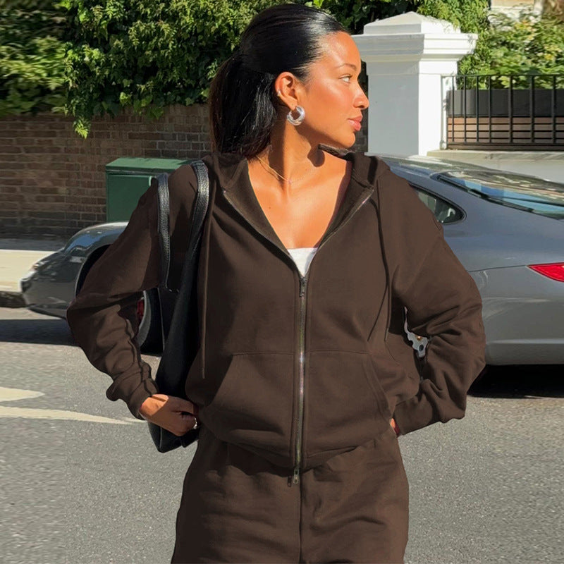 Zipper Hoodie & Drawstring Pants Set – Women's Slim Fit Casual Streetwear Suit